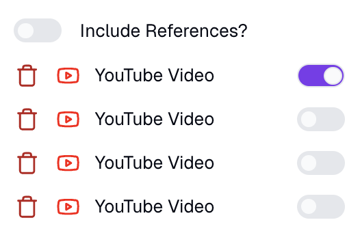 Once you've added sources, toggle them on or off based on relevance. Only the toggled-on posts will be used when you generate a new post or re-generate an existing post.